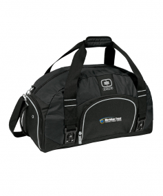 Sized to fit the gym locker, opens wide to reveal a roomy interior that holds shoes and a change of clothes. Features front zippered pocket, standard webbing shoulder strap, all metal hardware, side grab handle, and fabric-wrapped handle. Made with 600D poly/420D dobby poly. Includes a California Prop 65 hangtag. Complies with Prop 65. 10" H x 18" W x 9" D