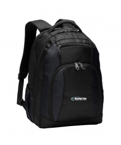 Our expansive, durable backpack has a checkpoint-friendly clamshell opening-making it user-friendly while safeguarding your laptop and tablet. 1,680 denier ballistic polyester in solid and two-tone accents. Features back laptop clamshell compartment with padding, center compartment with interior file divider, tricot-lined zippered pocket, front organization panel, ergonomic, adjustable, padded shoulder straps, and Pullman handle attachment strap. Laptop sleeve fits most 15" laptops. Complies with Prop 65. 12" W x 17" H x 8" D